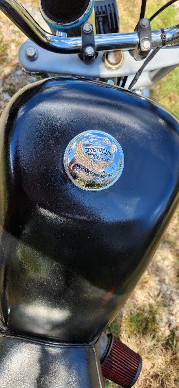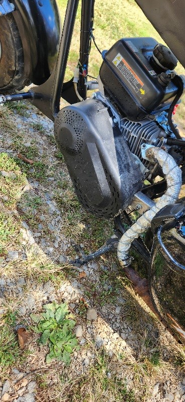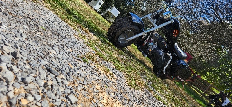 Mini harley look alike with actual harley gas tank and handle bars and foot pegs. Its got a torque converter and new air filter on it. It will do abt 45 mph and has lights but its not street legal.