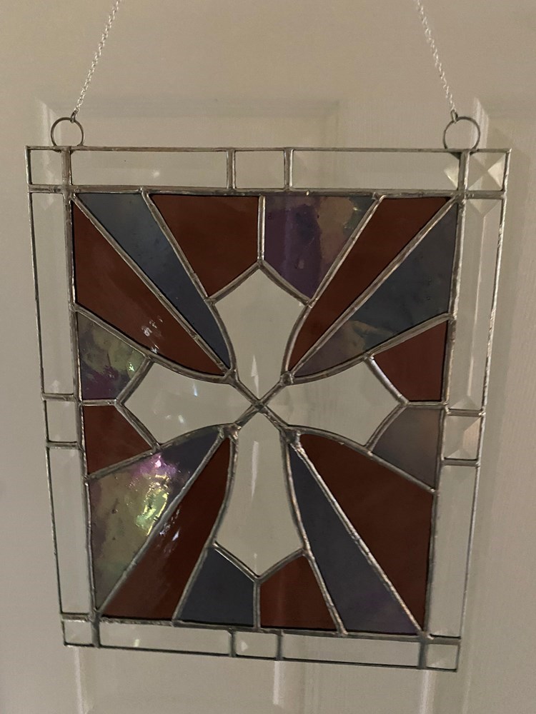 8X10 Blues and burgundy stainglass includes chain for hanging If shipping is necessary, shipping will be paid by item winner.